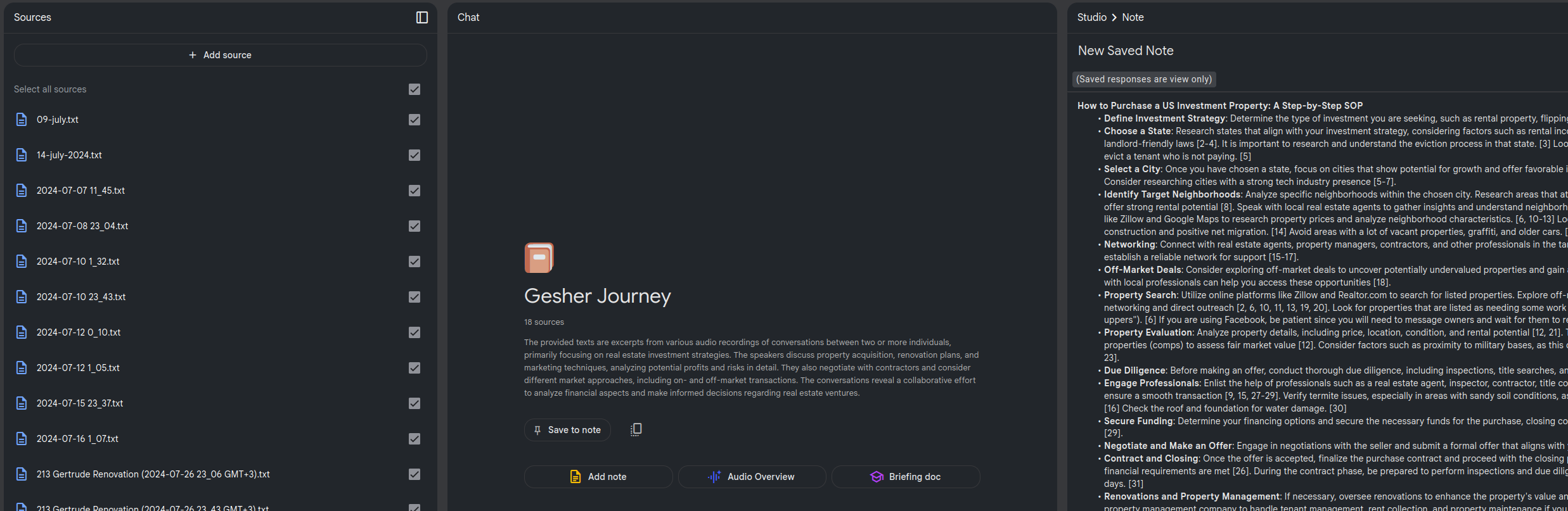Once the audio was transcribed, I fed the massive transcript into Google NotebookLM to generate a detailed outline of the whole process. This wasn’t just a summary; it captured the essence of our strategy, and helped us with step number 3. - Instantaneous Execution: