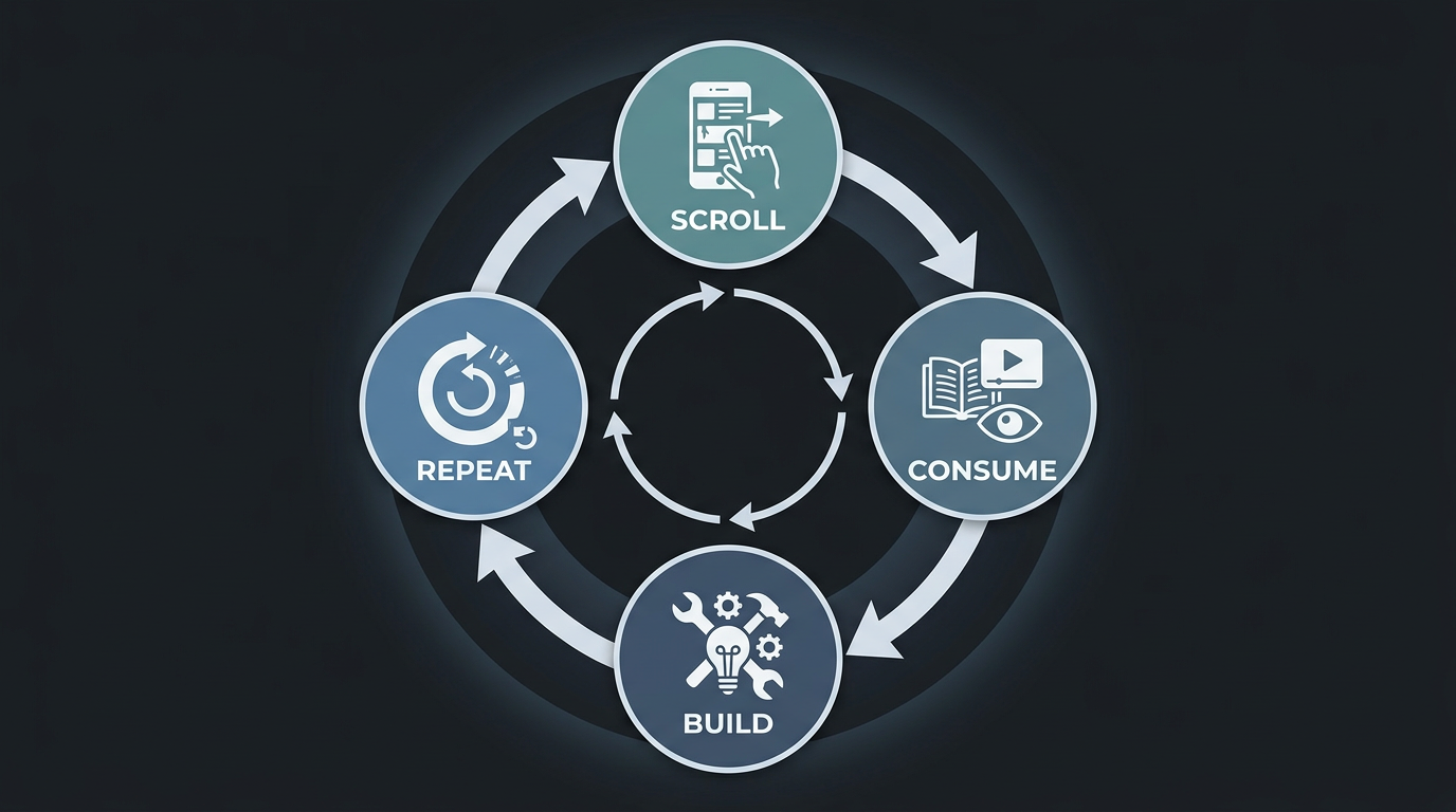 What we're basically doing is consuming the internet in order to make better agents. You get what I'm saying? We are consuming the data, the news. We are pinging ourselves all the time in order to make our agents better. What is this? Are we LLMs now? We are living on an agent loop ourselves. We are looping through our lives in front of social media, in front of the screen of our computer or phone. We are training our brains on that data in order to provide a better output.